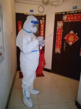 11月18日,張建民居住地大渡口區(qū)春暉路街道錦城社區(qū)的一樓棟被劃為高風(fēng)險區(qū),工作人員只能上門為這棟樓的居民采集核酸,感染風(fēng)險劇增,但張建民又主動請纓,干起了核酸上門采集的協(xié)助工作,一干就是四個小時。即使密不透風(fēng)的防護(hù)服讓他全身汗透,防護(hù)面罩不時籠罩起一層層水霧,即使幾個小時不喝水的他渴得口干舌燥,為了爭分奪秒順利完成核酸采集任務(wù),張建民都一一克服,一口氣協(xié)助完成60戶居民的核酸上門采集工作。