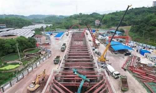 根據(jù)設(shè)計資料顯示,15號線二期中梁山隧道正線下穿5組既有線,其中安全風(fēng)險最高為下穿渭井下行線,拱頂埋深距離既有線鋼軌頂僅8.61米,周邊環(huán)境復(fù)雜,施工風(fēng)險極高。為保障中梁山隧道施工期間既有線安全運營,根據(jù)鐵路監(jiān)管部門要求,設(shè)計采用D16型施工便梁對下穿范圍內(nèi)線路進(jìn)行加固。該加固施工于2023年12月完成樁基礎(chǔ)施工,2024年4月開始籌備架梁工作,至5月16日凌晨完成全部架設(shè)任務(wù),安全恢復(fù)列車通行。