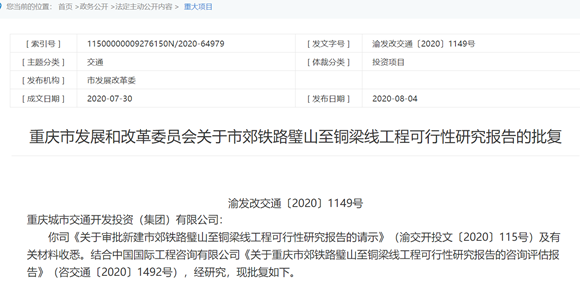 日前,重慶市發(fā)展和改革委員會(huì)發(fā)布關(guān)于市郊鐵路璧山至銅梁線工程可行性研究報(bào)告的批復(fù)。批復(fù)顯示,該項(xiàng)目估算總投資為86.42億元,線路全長37.35公里,設(shè)車站9座。