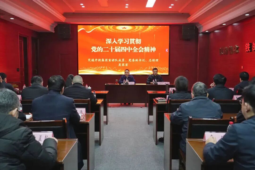 12月9日,重慶交通開投集團(tuán)宣講隊(duì)隊(duì)員、黨委副書記、總經(jīng)理吳家宏到交通建設(shè)公司宣講黨的二十屆四中全會(huì)精神。宣講報(bào)告會(huì)由交通建設(shè)公司黨委書記、董事長(zhǎng)馬虎主持。